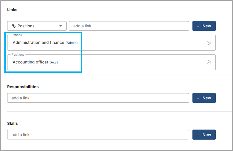 For example, here, the person belongs to the Administration and Finance entity and holds the position of Accounting Officer.