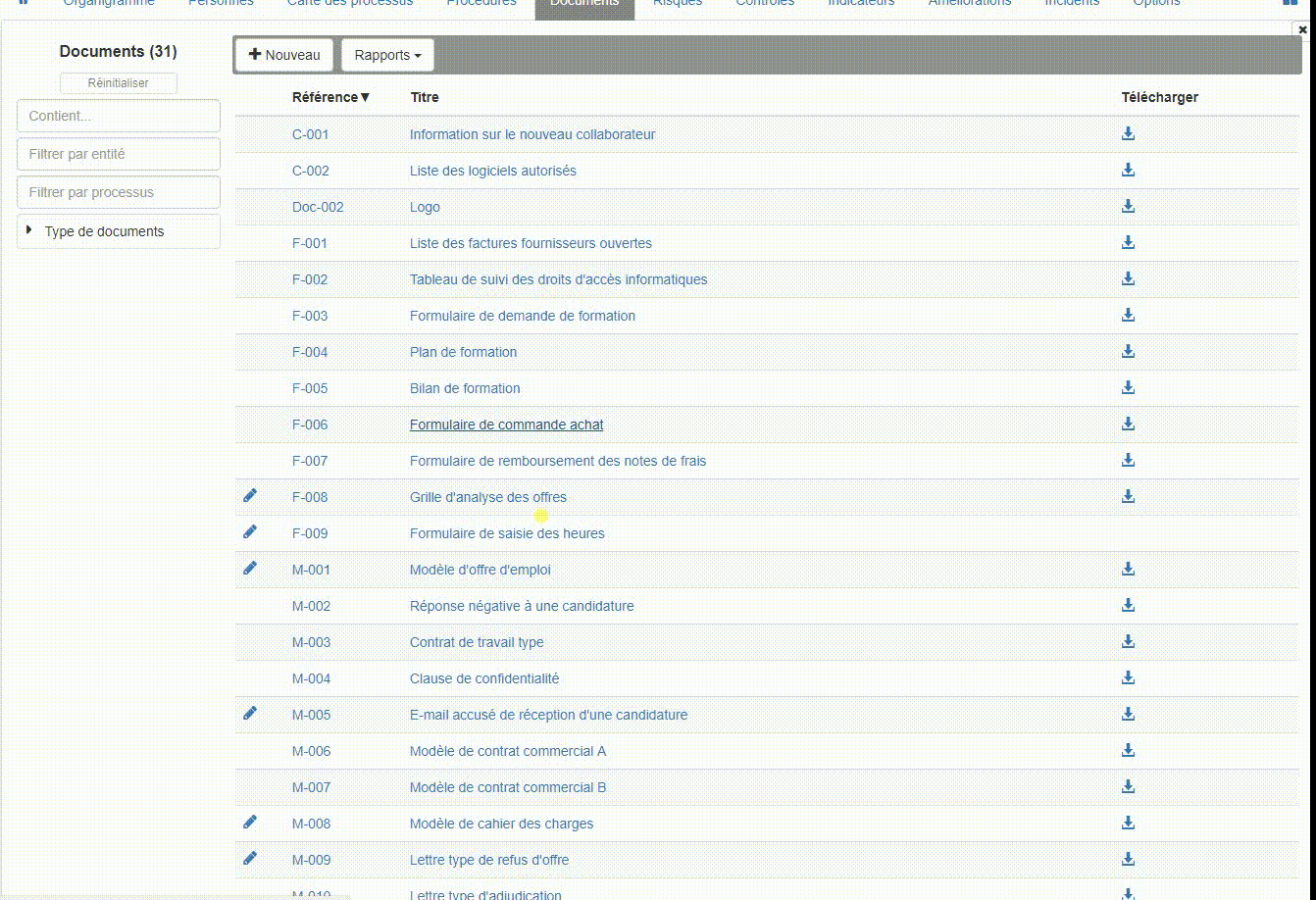 1. Le préfixe et les chiffres sont séparés par un tiret (p. ex. M-001, DOC-010, etc.)