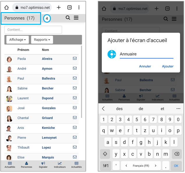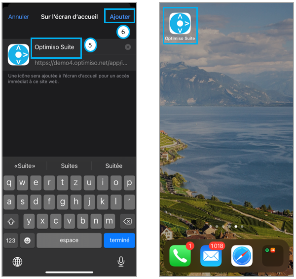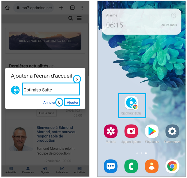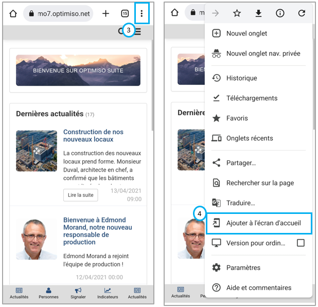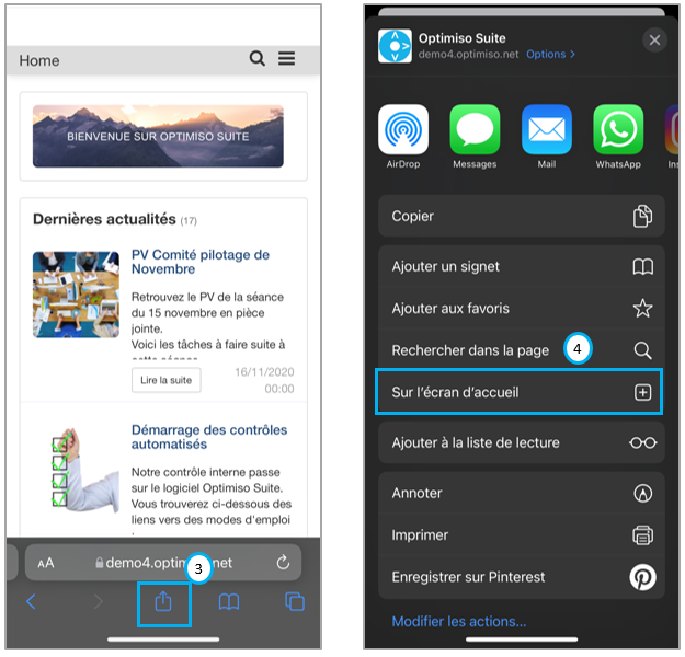 Créer un raccourci vers le site Optimiso Suite sur un smartphone