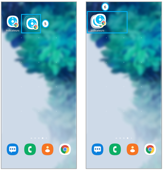 5. Maintenir appuyer l’un des icônes pour le déplacer
