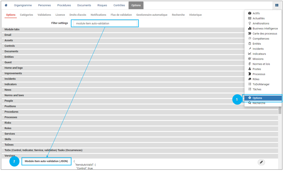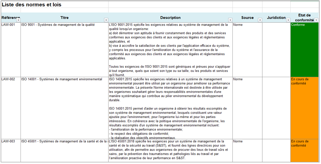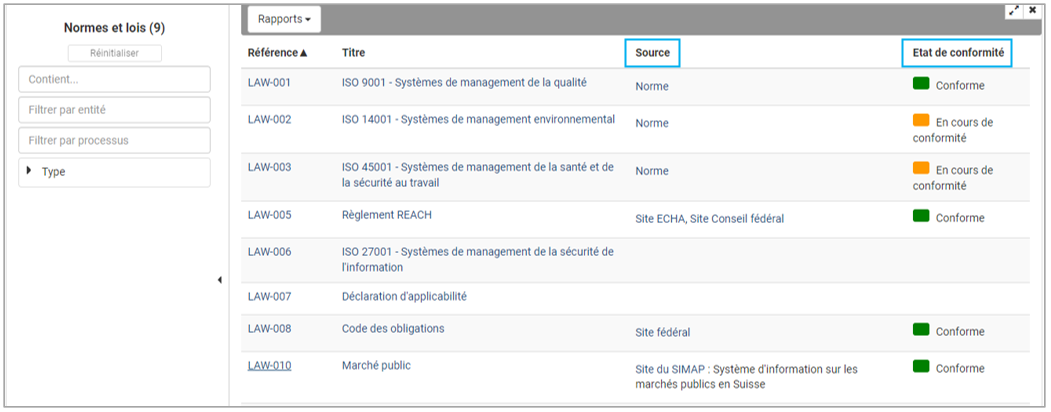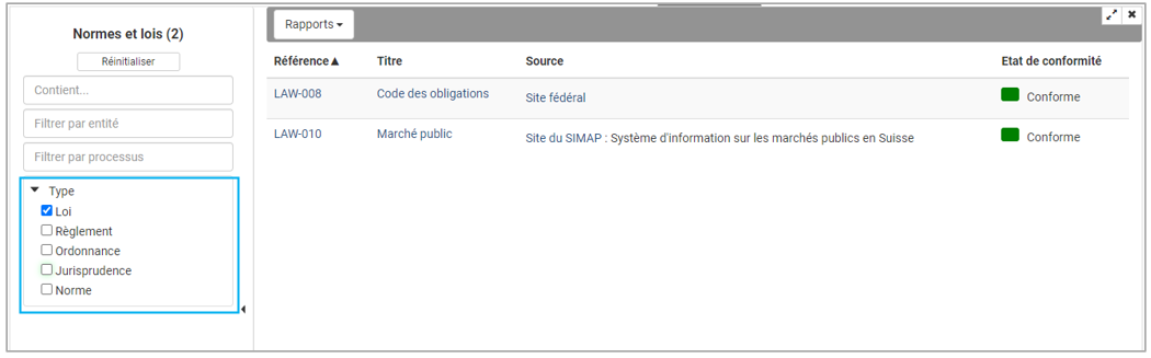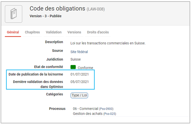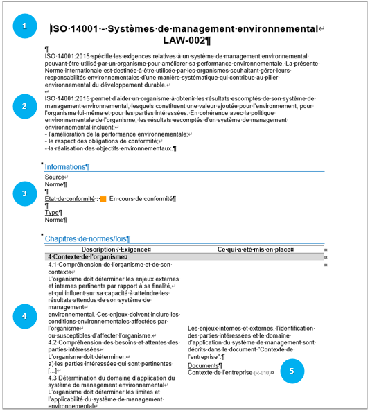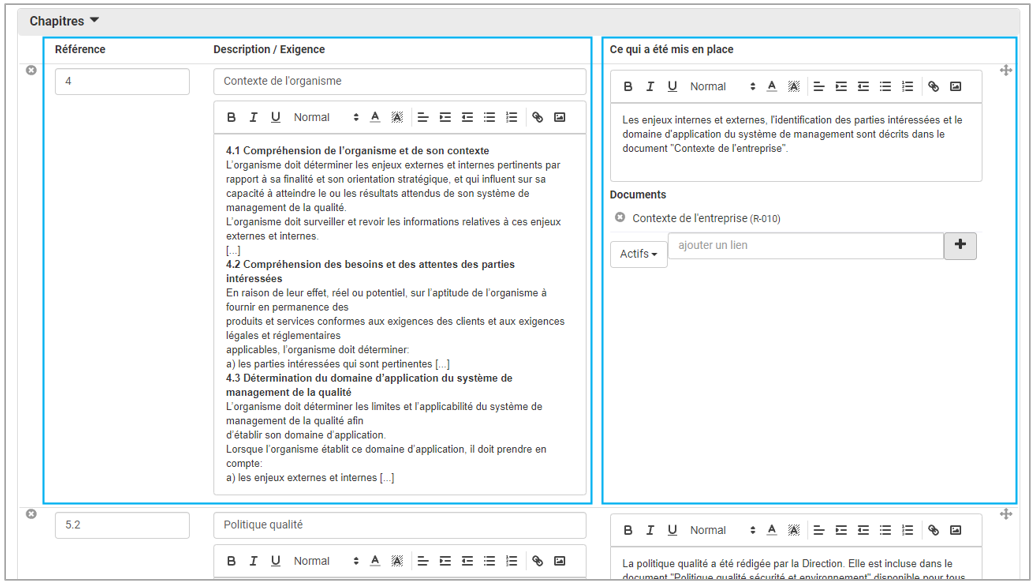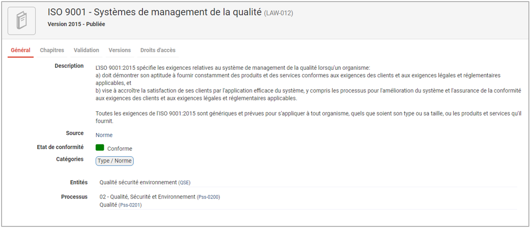 Pour aller plus dans le détail, vous avez la possibilité dans la partie Chapitres d’aller remettre les points de la loi ou de la norme.