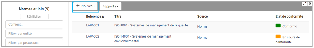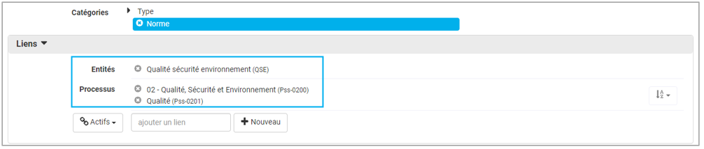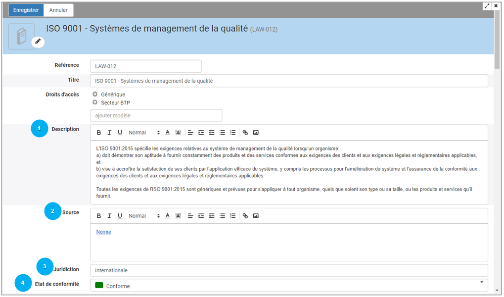 Voici l’exemple de la création de la norme ISO 9001. Il faut compléter les champs :