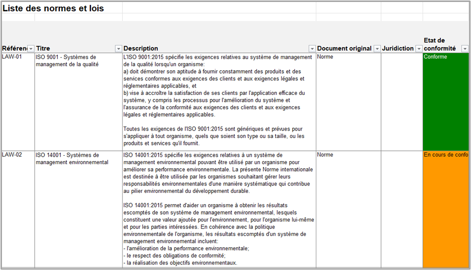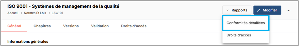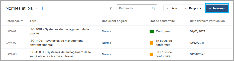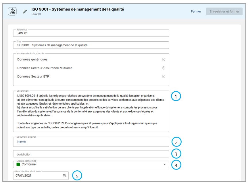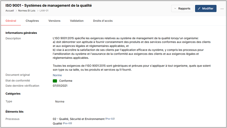 Voici l’exemple de la création de la norme ISO 9001. Il faut compléter les champs :