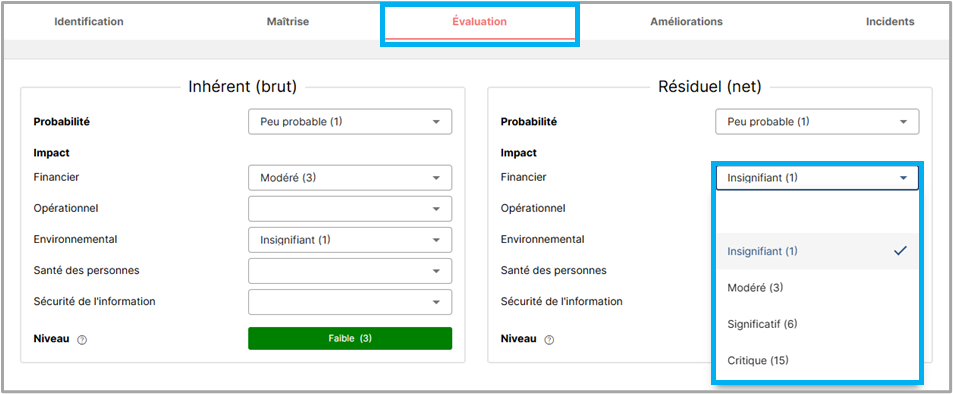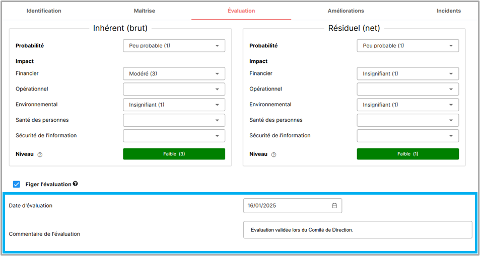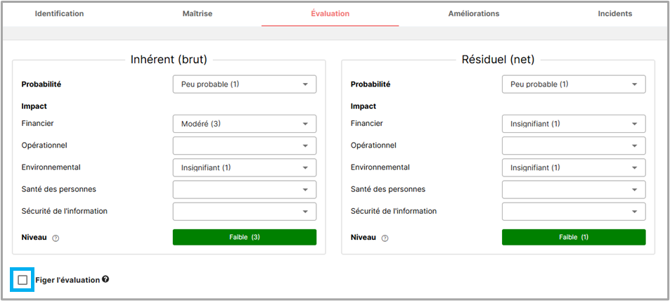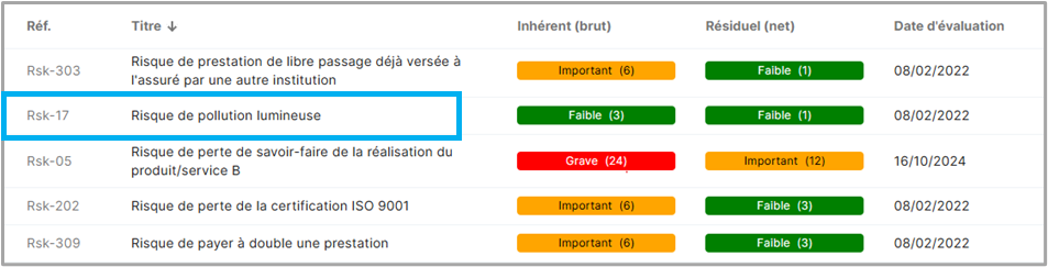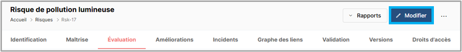 Afin de figer une évaluation des risques, il est nécessaire de vous rendre sur le module Risques.
