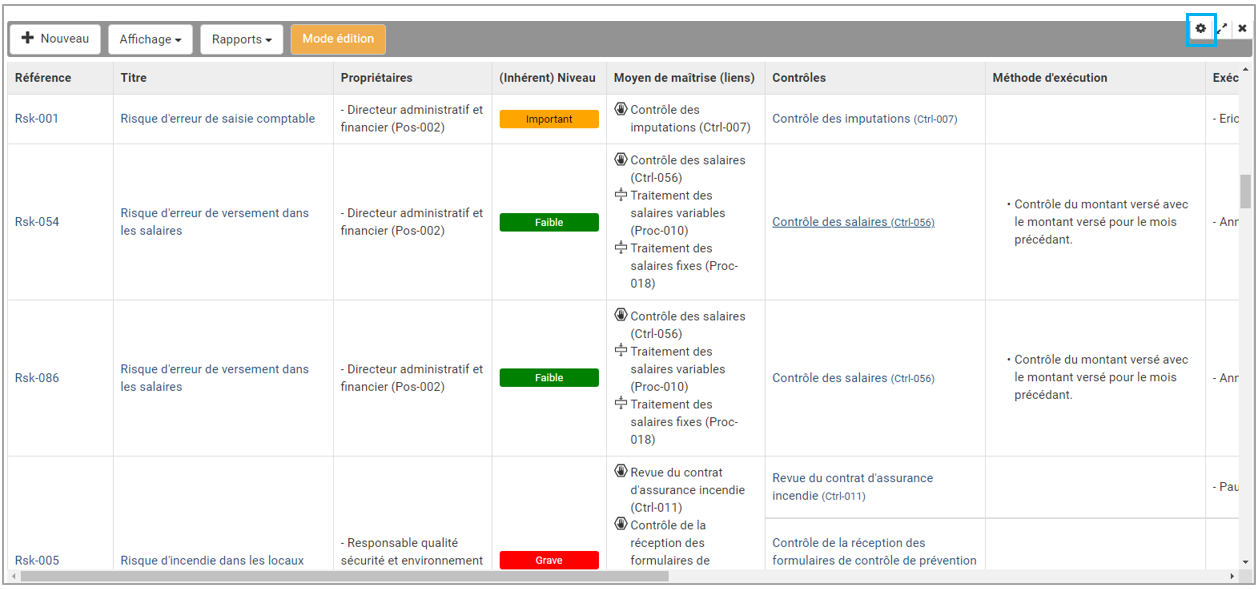 Activer le mode édition afin de modifier simplement, efficacement et sans erreur votre matrice des risques et contrôles.