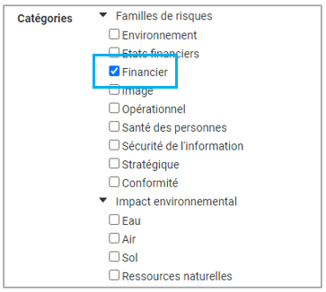 Cliquer sur Catégories et la liste de toutes les catégories existantes apparaît, puis sélectionner la ou les catégories applicables.