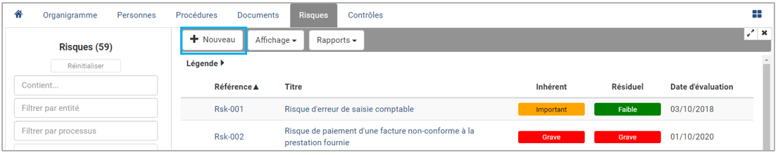 Aller dans le module Risques puis cliquer sur Nouveau.