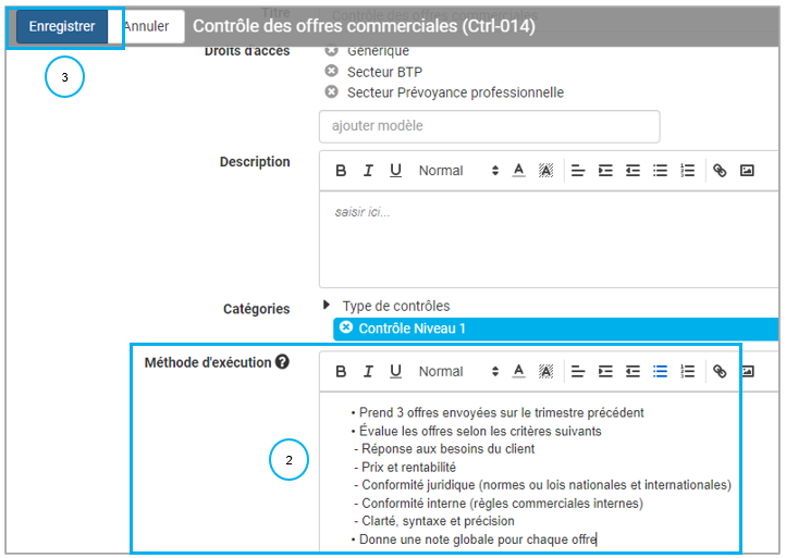 - enregistrer le contrôle