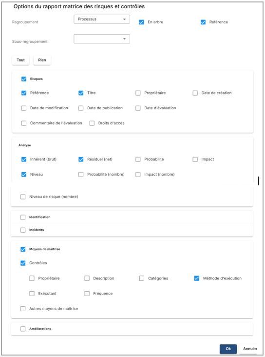- Vous pouvez aussi choisir de regrouper les risques par processus, actif, entité, normes et lois ou par procédure.