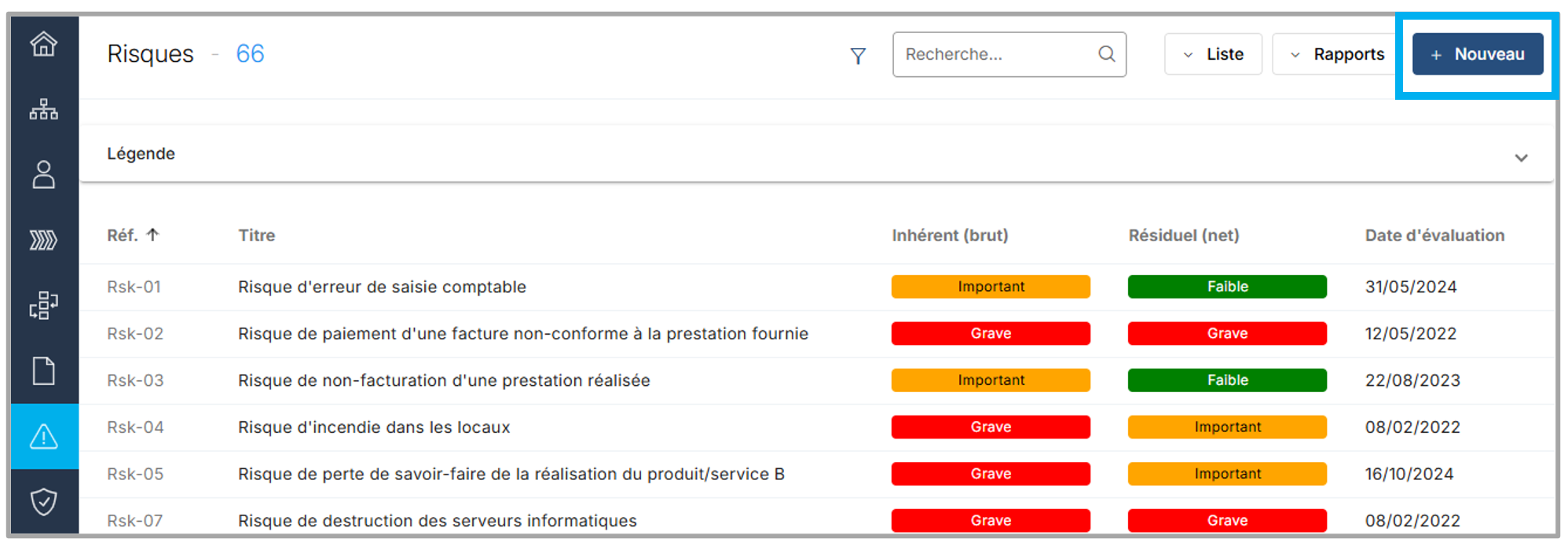 Aller dans le module Risques puis cliquer sur Nouveau.