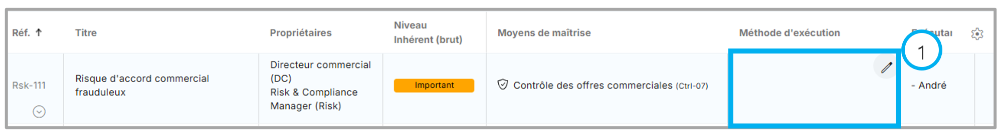 - les liens pour allez chercher les moyens de maîtrise existants dans les autres modules du logiciel. Par exemple faire un lien vers