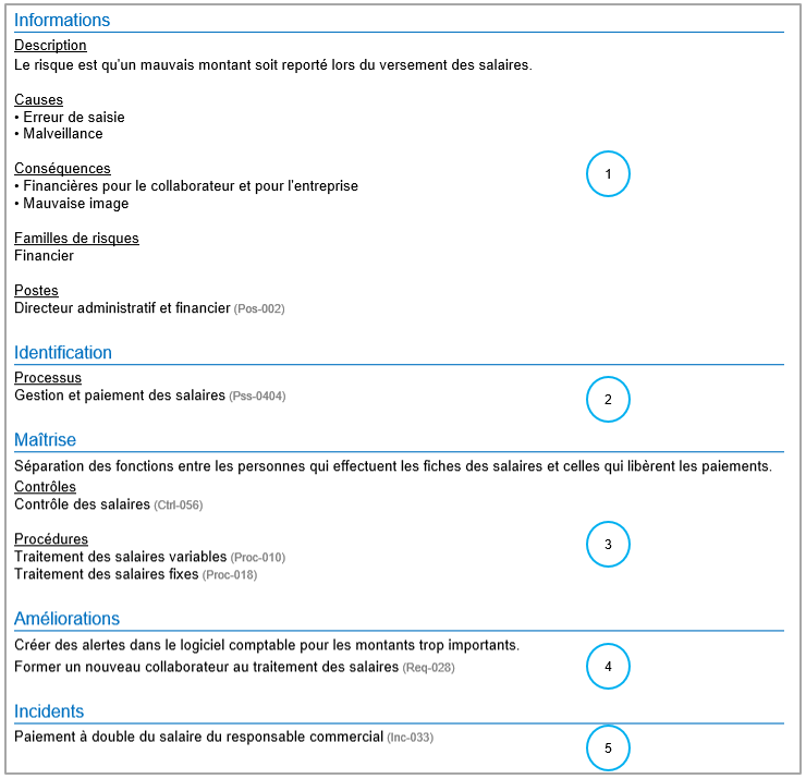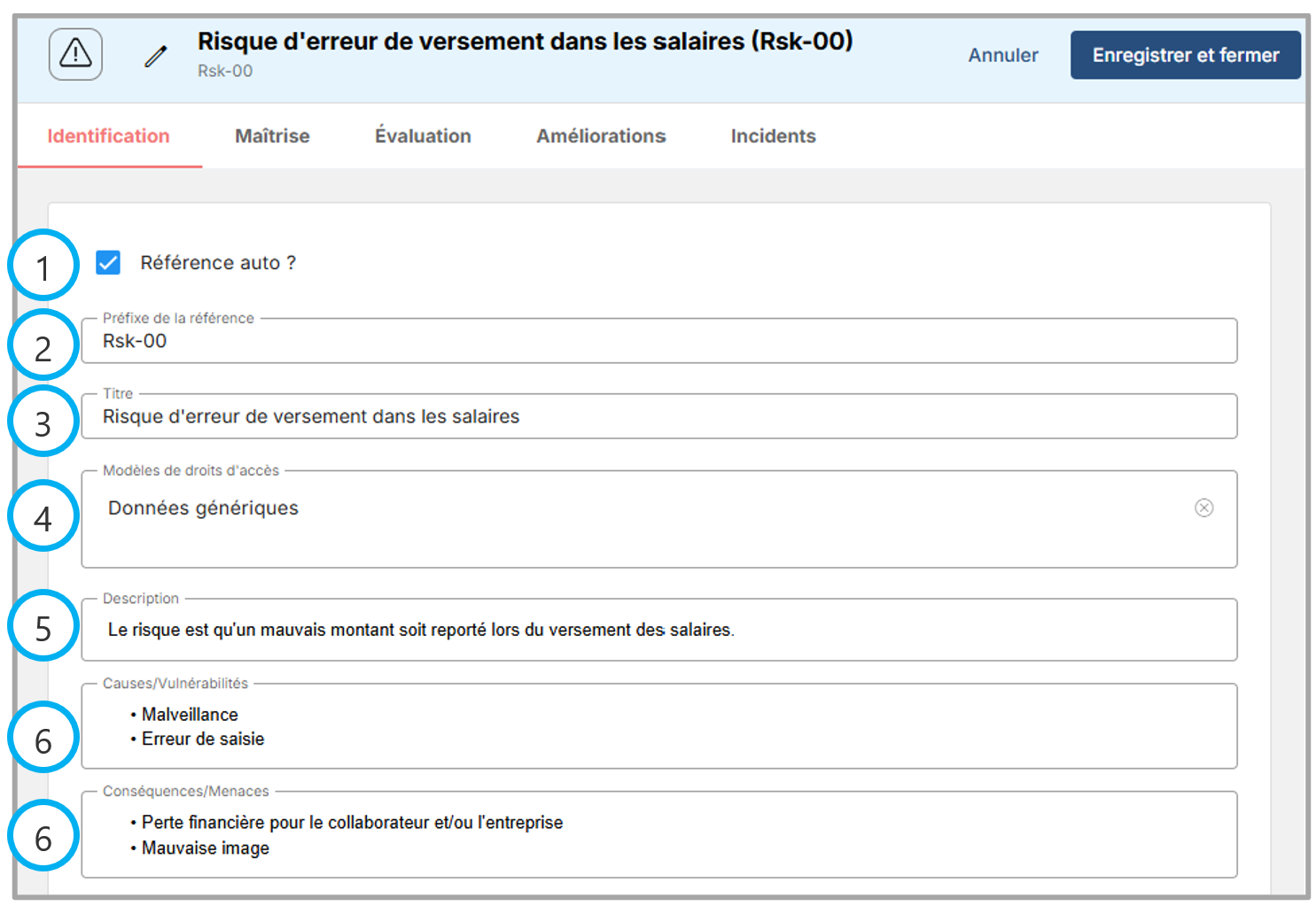 Ci-dessous l'exemple de la création du risque "Risque d'erreur de versement dans les salaires".