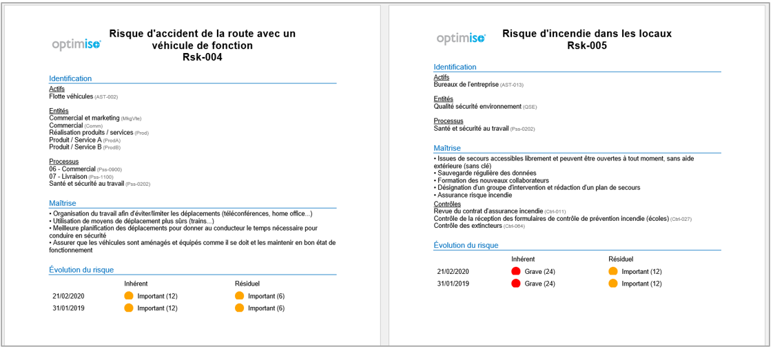 - Identification : avec les liens faits vers les autres éléments d’Optimiso Suite afin d'indiquer où se trouve votre risque