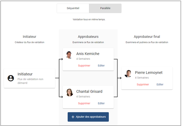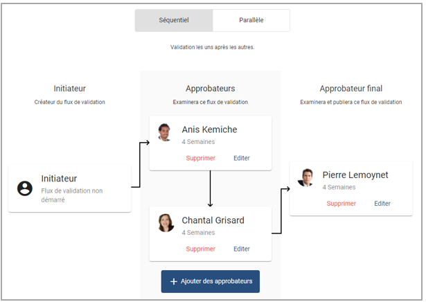 Attention : Une fois le flux de validation lancé, le créateur du flux :