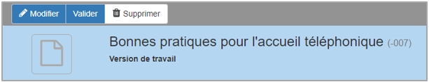 Ci-dessous le document est en cours de validation (bandeau orange), il n’est plus possible de modifier la version de travail.