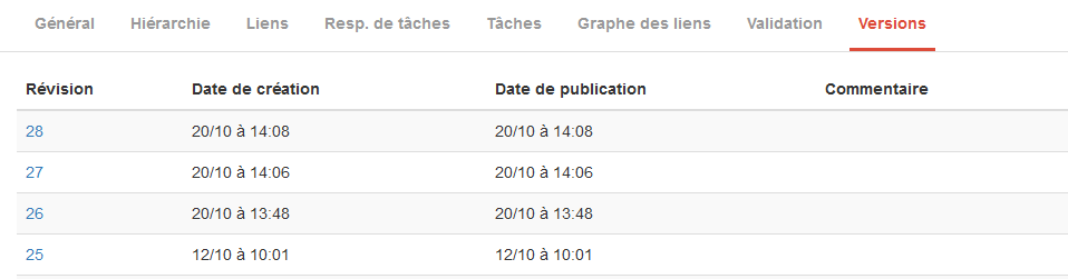 Ci-dessous les collaborateurs sont versionnés automatiquement. Cliquer sur le numéro de révision pour consulter les anciennes versions.