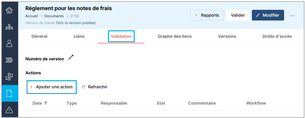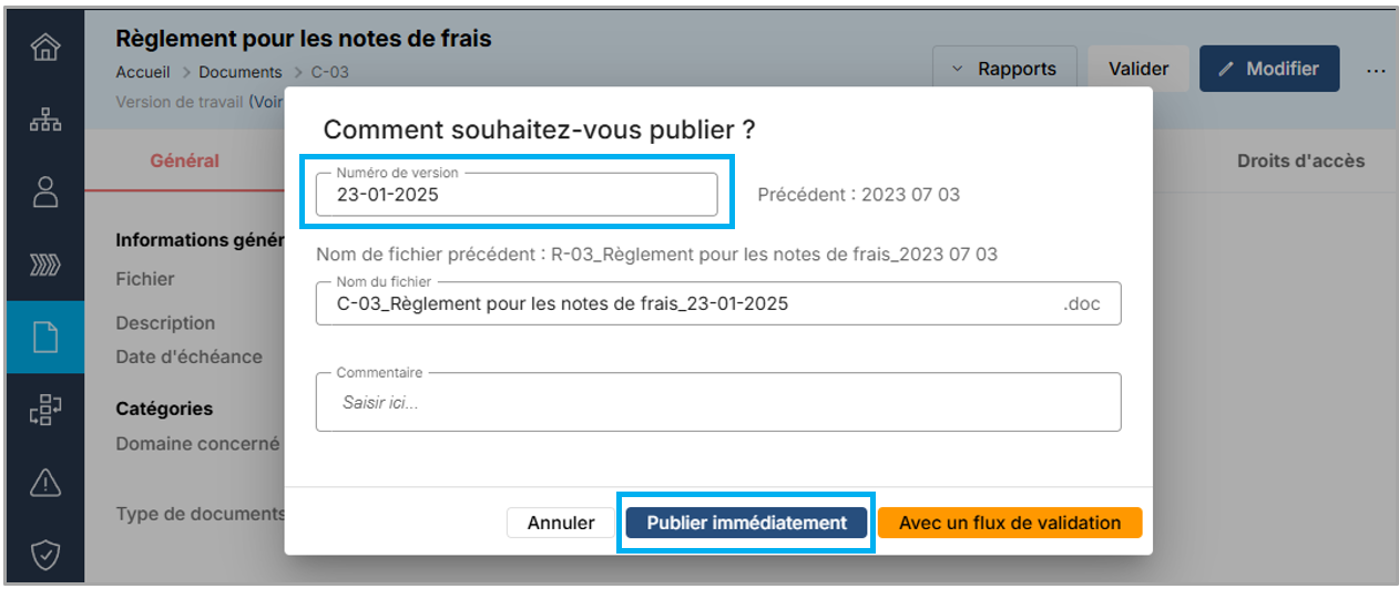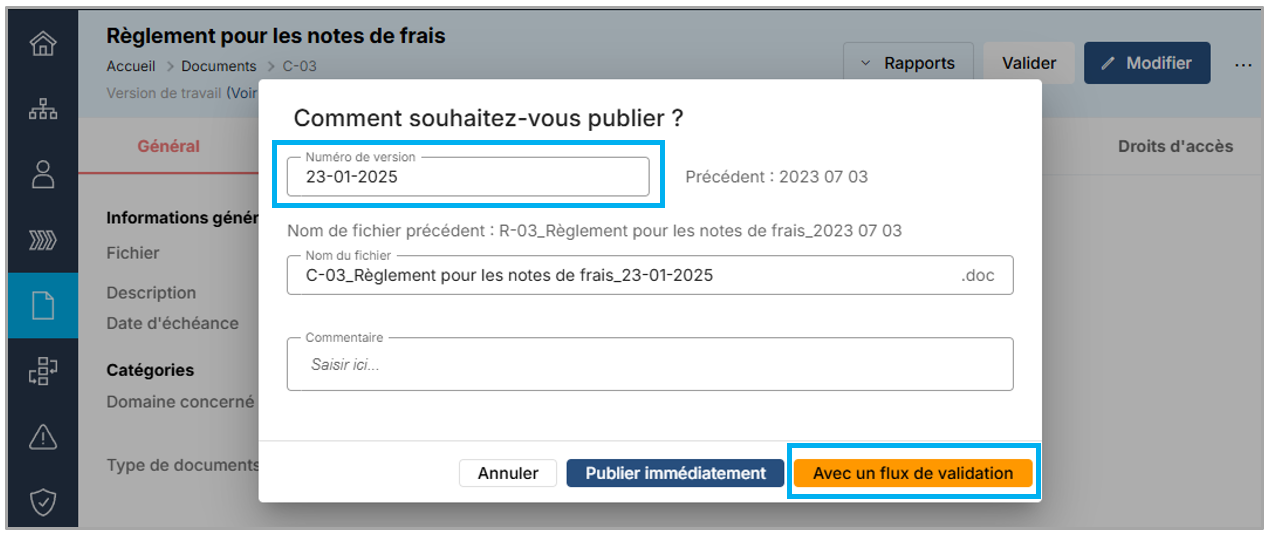 Le versionnement manuel peut être activé sur l’ensemble des modules Optimiso Suite. En configuration de base, seuls les modules Documents et Procédures sont en versionnement manuel.