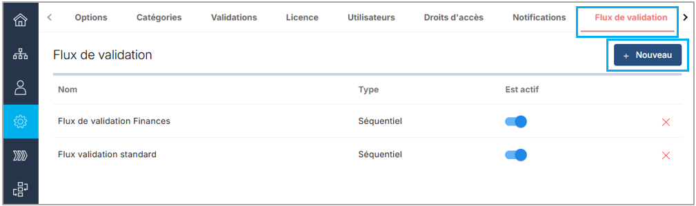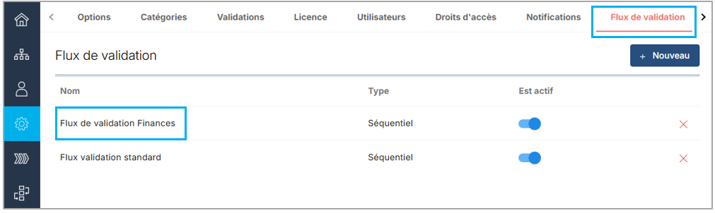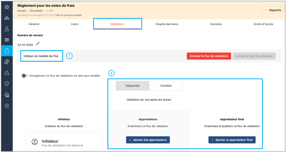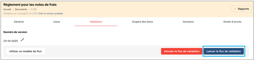 - Lancer le flux de validation en cliquant sur Lancer le flux de validation