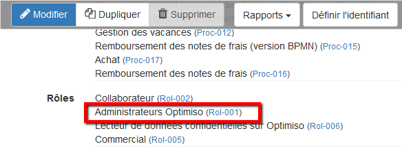 1) si vous avez bien le rôle "Administrateur Optimiso" ou un rôle vous permettant d'effectuer des modifications dans l'élément concerné.