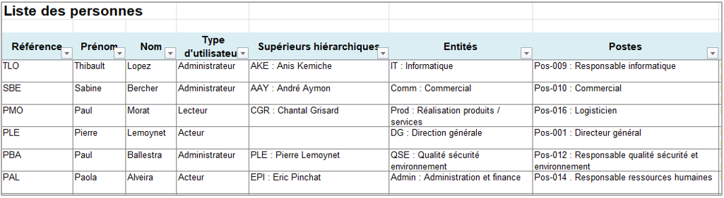 Ce rapport, disponible dans la presque totalité des modules, permet de sortir une liste des éléments d'un module avec leurs informations.