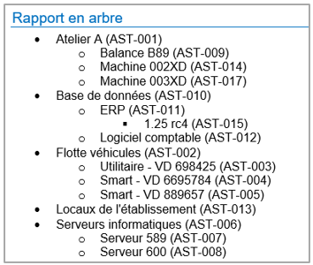 L'ordre des éléments dans le rapport est déterminé par celui visible dans l'affichage "En arbre" du module.