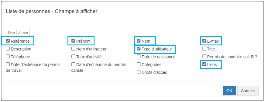 Note : en choisissant "Liens" dans les colonnes à choix, toutes les colonnes des liens possibles apparaitront dans le rapport. Vous pourrez alors supprimer manuellement les colonnes non souhaitées.