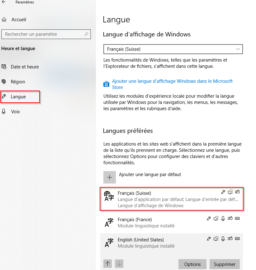 - Dans la section Langues préférées, ajoutez la langue si celle-ci ne figure pas dans la liste