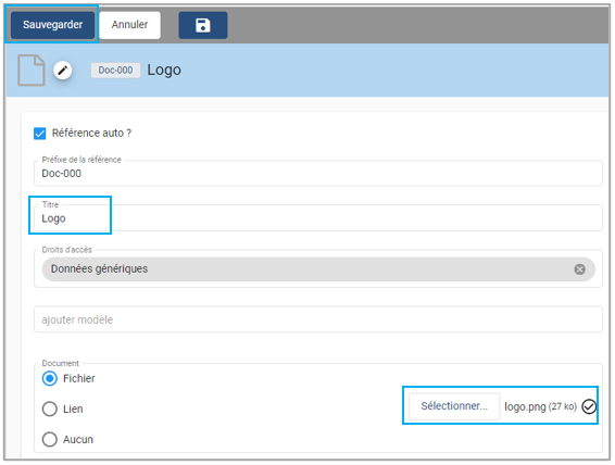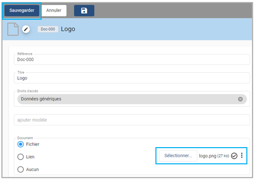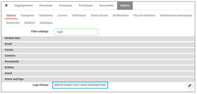 Aller dans le module Documents et rechercher le document "Logo"