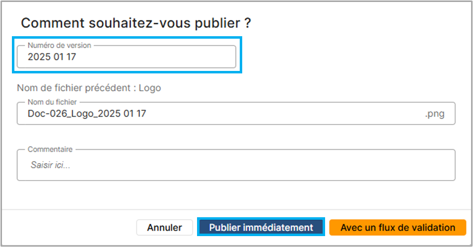 Compléter le numéro de version et cliquer sur Publier immédiatement.