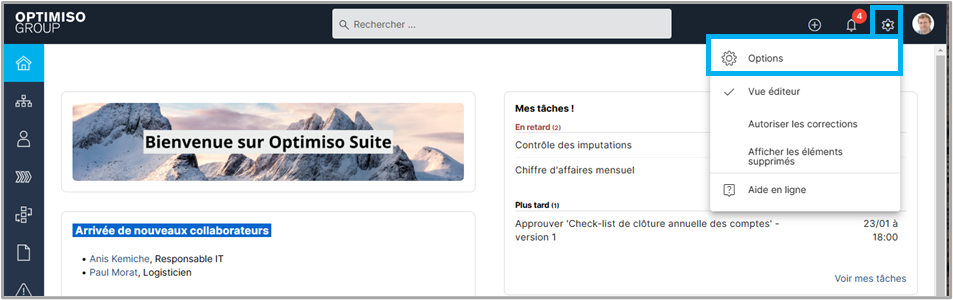 Se rendre dans les options en cliquant sur la roue crantée située en haut à droite, puis cliquer sur options.