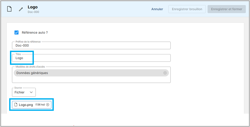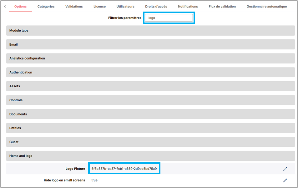 Pour remplacer le logo existant, il vous suffit de mettre à jour le document Logo depuis le module document et de le publier.