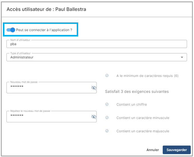 1) Activer "Peut se connecter à l'application ?"