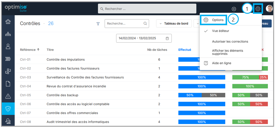 2.2 Consulter le pourcentage d'exécution des contrôles